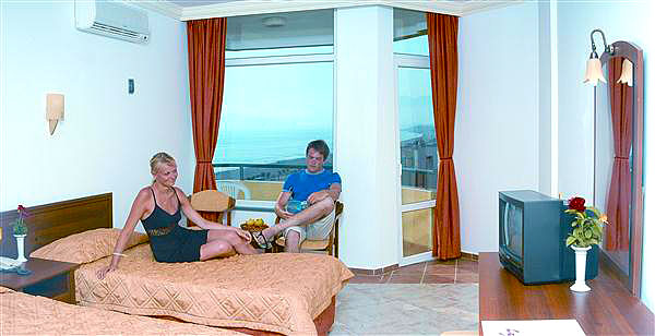 75 стандартных комнат (15-18 кв.м), ванна, фен, телефон, мини-бар (по запросу), ТВ с российским каналом, балкон, керамическое покрытие, центральное кондиционирование (ч.р. ограничены, меняются в зависимости от сезона), детская кровать (по запросу). Смена белья и полотенец 3 раза в неделю.